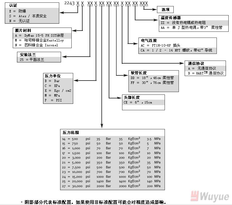 特征 ★ 通過(guò)“Z971”選項(xiàng)改進(jìn)的線性產(chǎn)品 ★ HARTTM數(shù)字通訊系統(tǒng) ★ 4-20mA 環(huán)路供電輸出 ★ 0-500到0-30,000psi ★ 防爆,ATEX/本質(zhì)安全認(rèn)證 ★ 符合PED和CE要求 優(yōu)點(diǎn) ★ 線性改進(jìn)80% ★ 能通過(guò)手持式裝置配置 ★ 直接提供輸出給DCS或PLC ★ 由客戶定義壓力量程 ★ 已認(rèn)證無(wú)環(huán)境污染 ★ 符合新的EC要求 產(chǎn)品描述 SPX-L產(chǎn)品是一個(gè)智能的4-20mA 按鈕密封式壓力傳感器,能在惡劣的環(huán)境下使用。SPX2243是全焊接結(jié)構(gòu),具有一個(gè)小膜片和一個(gè)法蘭墊片,便于輕松安裝。SPX2243E適用于1級(jí),1區(qū),A,B,C&D組的危險(xiǎn)區(qū)。防爆模式采用一個(gè)導(dǎo)管裝置。SPX2243S還擁有ATEX/本質(zhì)安全‖1Gooa Eex ia ‖C, 0和1區(qū)的認(rèn)證。本質(zhì)安全和ATEX模式被提供一個(gè)導(dǎo)管裝置或一個(gè)密封6針邦迪克斯連接器。SPX-L同樣包括一個(gè)新的Dynisco 先進(jìn)模塊,DynalarityTM,一個(gè)使由材料和加工變化引起的偏移線性化的高級(jí)運(yùn)算法則模塊。 SPX-L2243按鈕密封式高溫熔體壓力傳感器(button type seally pakaged high temperature melt pressure sensor)